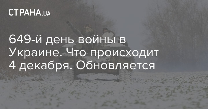 В понедельник, 4 декабря, в Украине идет 649-й день войны с Россией.