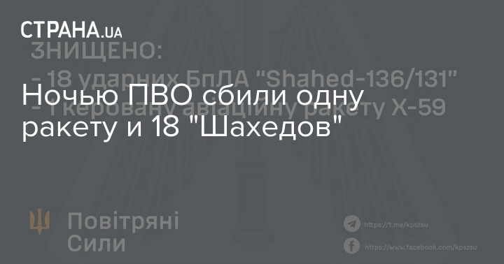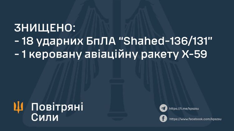 В результате были уничтожены 18 ударных БпЛА и одна управляемая авиационная ракета Х-59.