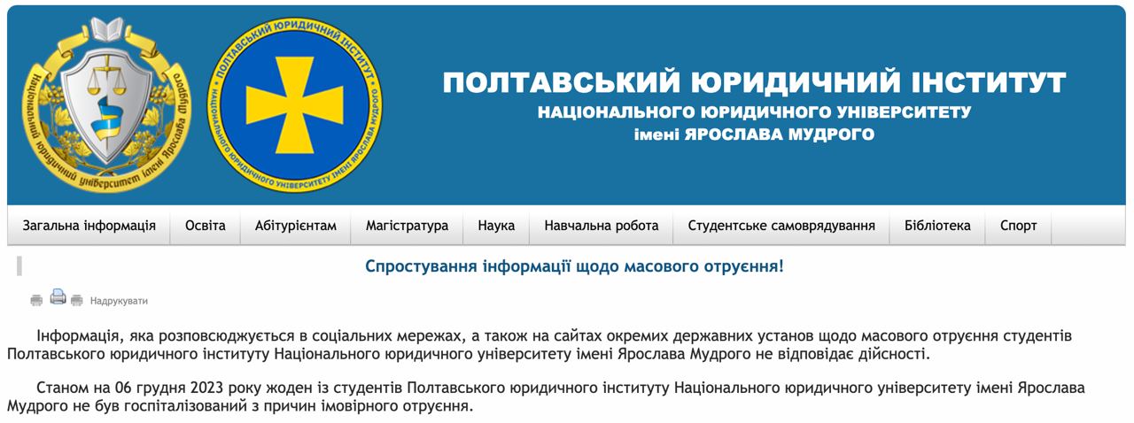 Вероятно, они питались в столовой Полтавской политехники имени Юрия Кондратюка. Начато эпидемиологическое расследование.
