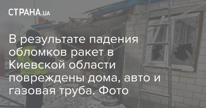 В результате падения обломков ракет в Киевской области повреждены дома, автомобили, хозяйственные здания и газовая труба. Пострадавших нет.