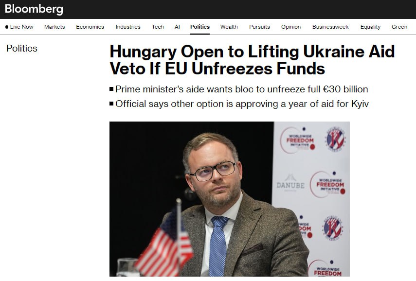 Будапешт готов отозвать своё вето на финансирование Украины Евросоюзом в обмен на миллиарды евро, которые ЕС удерживает из-за проблем с демократией в Венгрии.