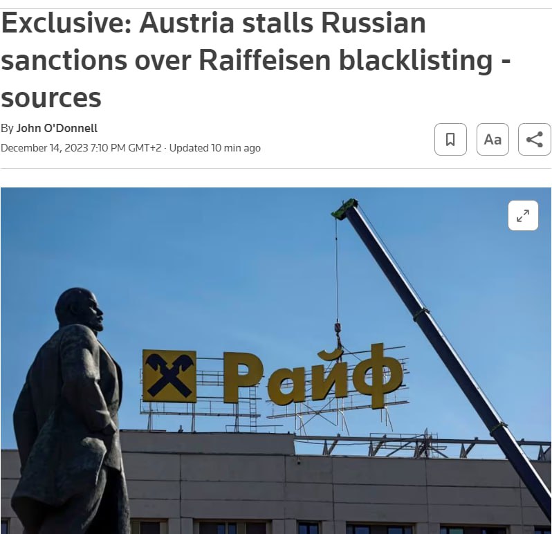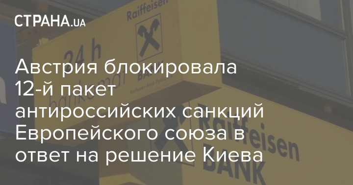 Австрия блокировала 12-й пакет санкций ЕС против России, требуя отмены Киевом украинских санкций против Raiffeisen Bank International.