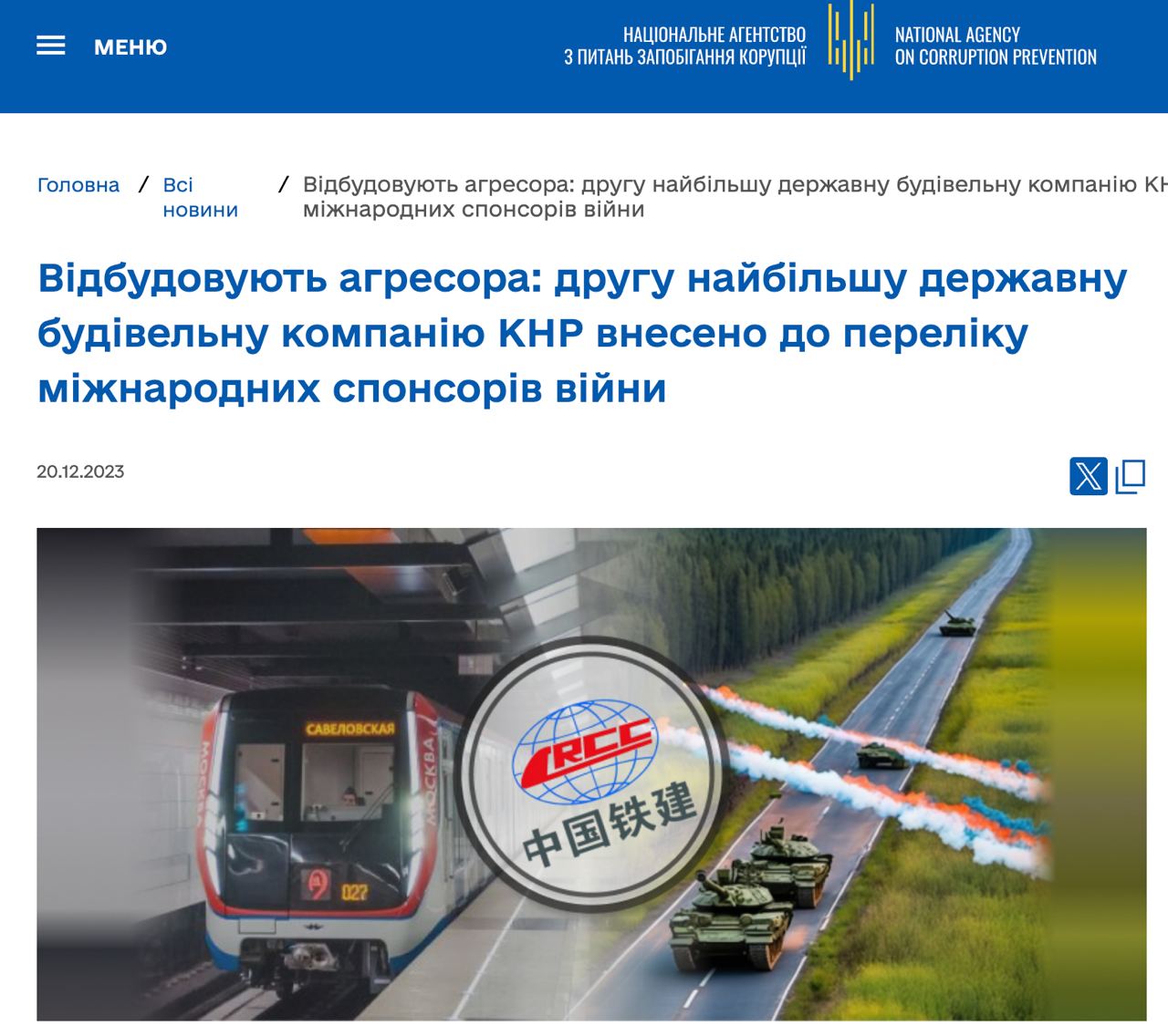 09.53 НАПК внес вторую крупнейшую строительную госкомпанию Китая в перечень международных спонсоров войны.