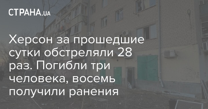 Херсон за прошедшие сутки обстреляли 28 раз. Погибли три человека, восемь получили ранения