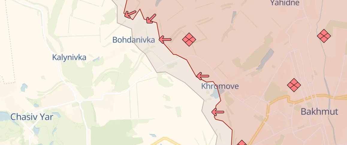 Россияне продолжают активное наступление под Бахмутом, пишут украинские военные паблики. Они уже ведут бои внутри Богдановки, противник продвинулся вглубь села до 300-500 метров, к северу от деревни он закрепился в посадках. От Богдановки, напомним, открывается дорога как на Часов Яр (крупнейший укрепрайон ВСУ на пути к Славянску и Краматорску), так и к коммуникациям ВСУ к западу от Бахмута.