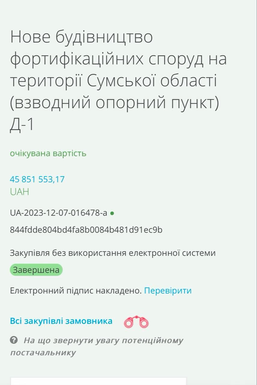 В Сумской области тендер на строительство опорного пункта за почти 50 миллионов выиграла фирма главы ОВА