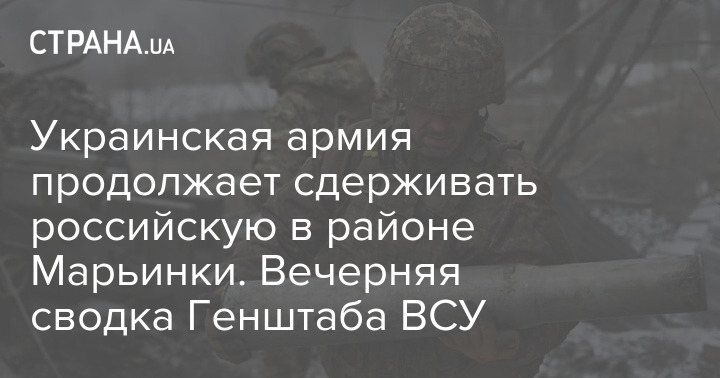 В вечерней сводке Генерального штаба Вооруженных сил Украины (ВСУ) говорится, что украинские военные "продолжают сдерживать" россиян в районе Марьинки, которая утром 26 декабря исчезла из сводки, и что город сегодня был под артиллерийским и минометным огнем армии России.