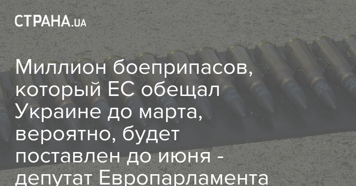 Миллион боеприпасов, который ЕС обещал Украине до марта, вероятно, будет поставлен до июня - депутат Европарламента
