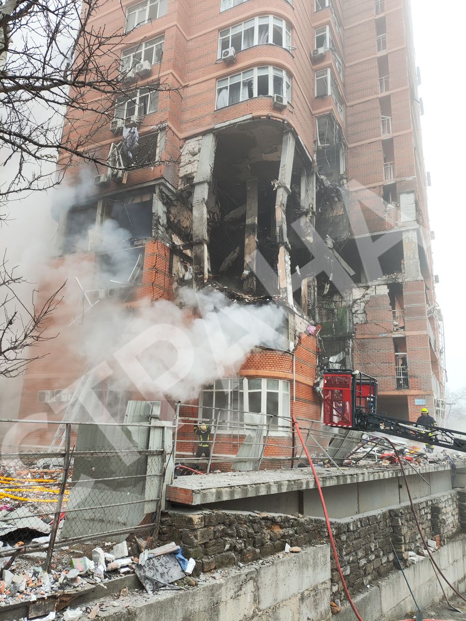 В Киеве под обстрелы попали Святошинский, Подольский и Шевченковский районы. Повреждена гражданская инфраструктура, автомобили, складские помещения. На Святошино прилет был по дому - есть видео, как ракета, уже горящая в воздухе, врезается в крышу многоэтажки.