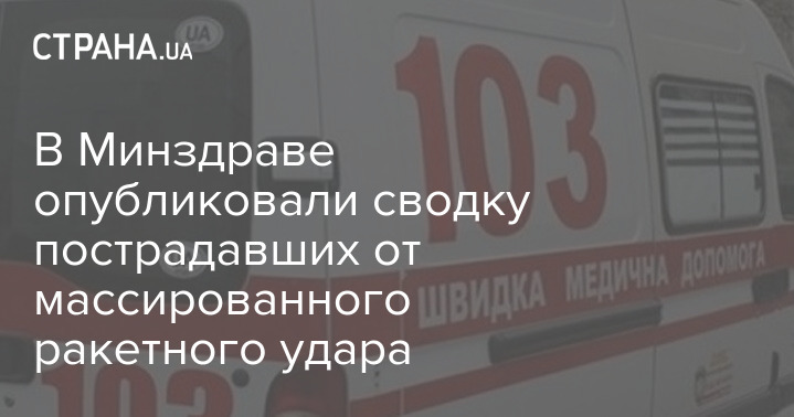 Минздрав Украины обнародовал предварительную сводку о пострадавших по регионам после ракетных ударов рф.