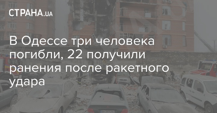 "Три человека погибли. 22 человека получили ранения, в том числе двое детей (6 и 8 лет) и беременная женщина. Также в тяжелом состоянии 26-летняя девушка, врачи делают все возможное. В больницах города остается 18 пострадавших, остальные после получения помощи продолжают лечение дома" - сообщил глава Одесской ОВА Олег Кипер.