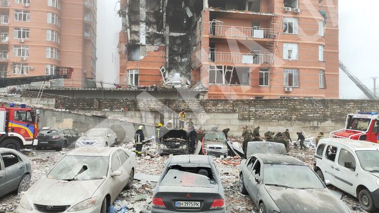 Появились кадры с места прилета ракеты по жилому дому в Одессе.