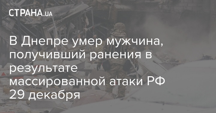 В Днепре умер мужчина, получивший ранения в результате массированной атаки РФ 29 декабря