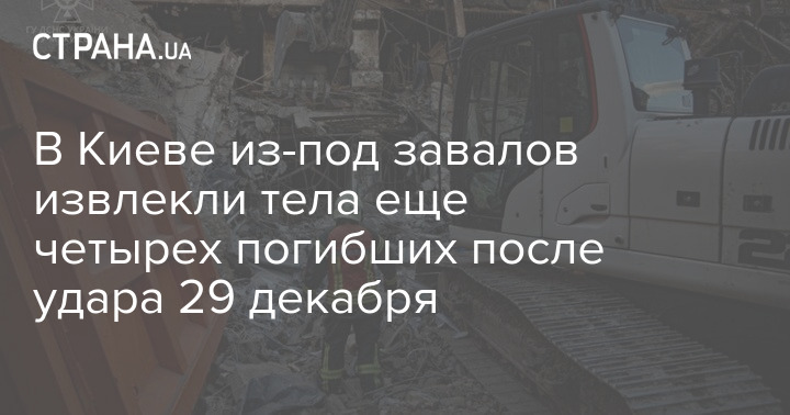 Напомним, что ракетная атака по Киеву 29 декабря стала самой массовой по количеству жертв среди мирных жителей. Из-под завалов складского помещения в Шевченковском районе Киева продолжают доставать тела погибших.