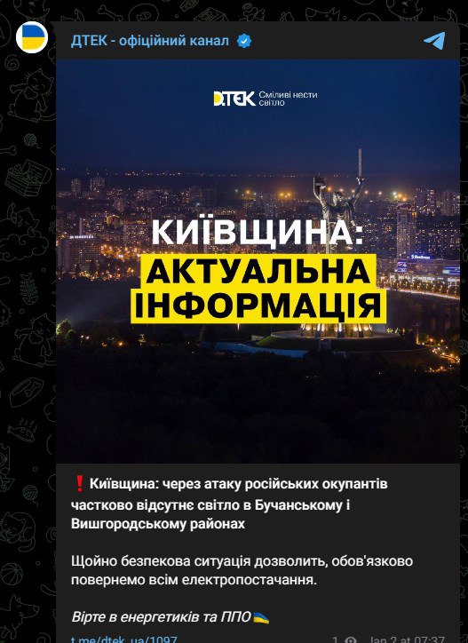 08.38 Из-за ракетной атаки частично отсутствует свет в Бучанском и Вышгородском районах Киевской области.