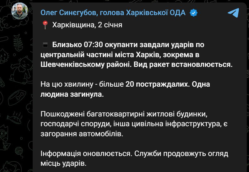 08.50 В Харькове есть погибший после утренней ракетной атаки.