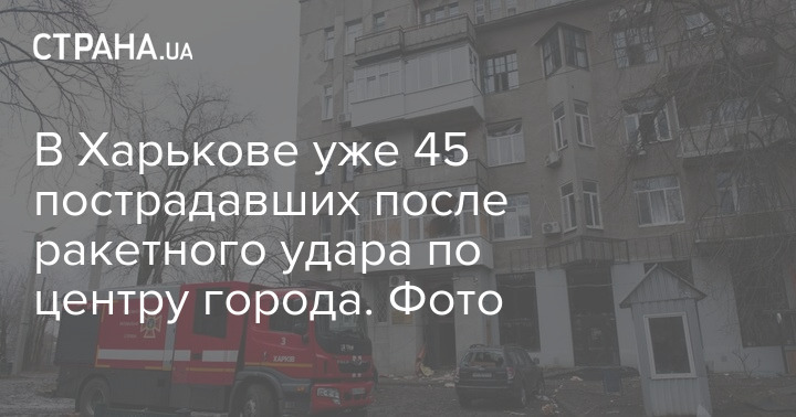 В Харькове уже 45 пострадавших после ракетной атаки по центру города. Погибла 91-летняя женщина. Двое пострадавших - в тяжелом состоянии, одна пожилая женщина - в коме.