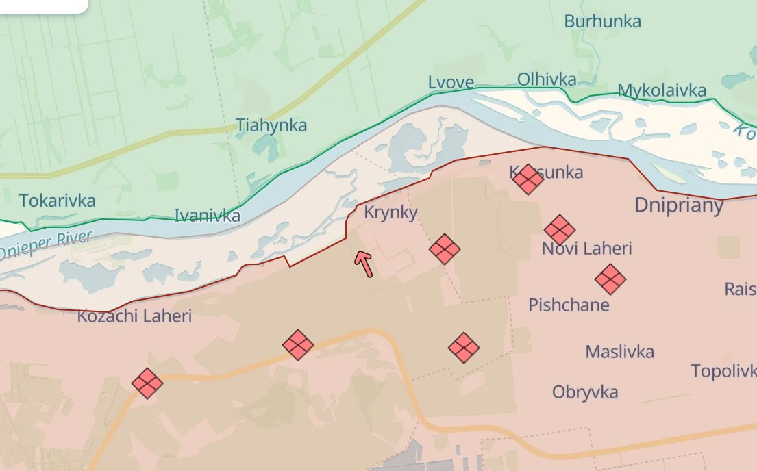 К слову, в российских военных пабликах продолжают звучать версии о том, что плацдарм в Крынках - это отвлекающий маневр, чтобы подготовить масштабное форсирование Днепра силами ВСУ в другом месте.