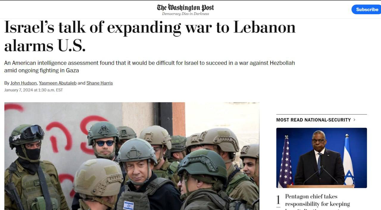 По оценкам американской разведки Израилю будет трудно добиться успеха в войне против Хезболлы на фоне продолжающихся боевых действий в секторе Газа.