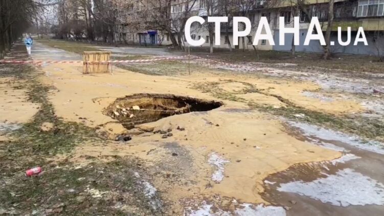 Последствия водопроводной аварии на Борщаговке в Киеве. Фото: "Страна"