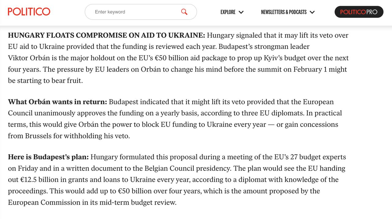 Таким образом Будапешт будет иметь возможность блокировать финансирование ЕС для Украины ежегодно – или получать уступки от Брюсселя за свой голос.