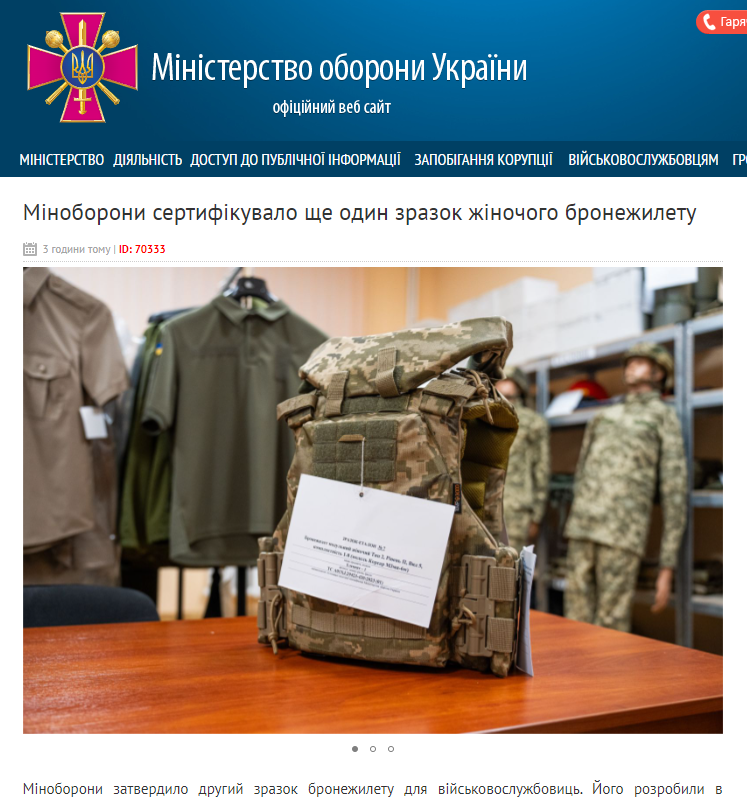 "Минобороны утвердило второй образец бронежилета для военнослужащих. Его разработали в компании "Темп - 3000". Если в первом сертифицированном образце от "Украинской брони" бронеплита имела изогнутую наружу форму, то в компании "Темп - 3000" женский бронежилет укомплектовали демпферными подушками. Они помогут подогнать бронежилет под анатомические особенности каждой женщины. Всего в комплекте три подушечки разных размеров", - говорится в сообщении, опубликованном на сайте Минобороны.