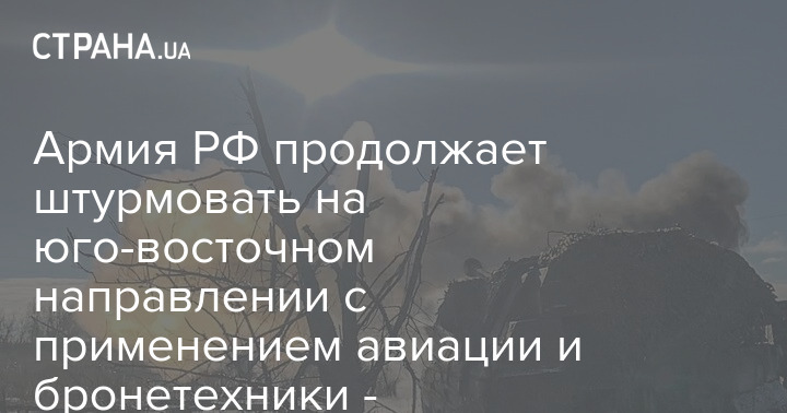 Армия РФ продолжает активные штурмовые действия на юго-восточном направлении с применением авиации и бронетехники.