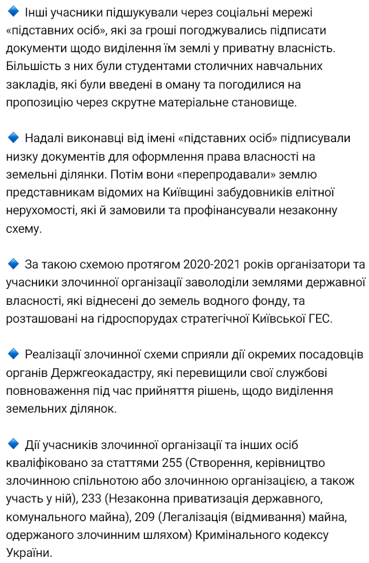 "Далее их безвозмездно передали в частную собственность подконтрольным лицам вроде бы для ведения садоводства", - заявили в Нацполиции.