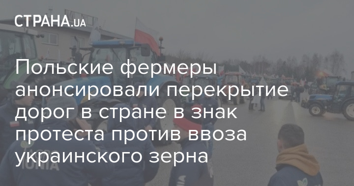 Польские фермеры анонсировали перекрытие дорог по всей стране в знак протеста против импорта зерна из Украины и политики Евросоюза.