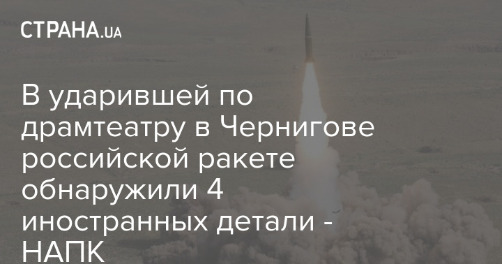 В российской ракете "Искандер-К", ударившей по драматическому театру в Чернигове, нашли четыре иностранных детали.