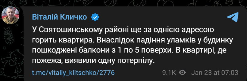 09.40 Сводка от Кличко по последствия ракетного обстрела Киева на эту минуту.