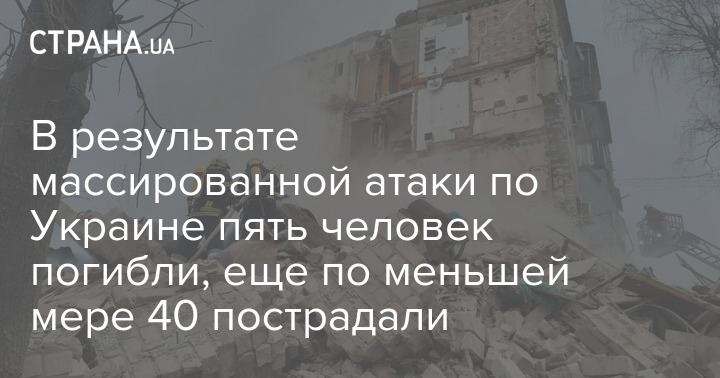 В результате массированной атаки по Украине пять человек погибли, еще по меньшей мере 40 пострадали