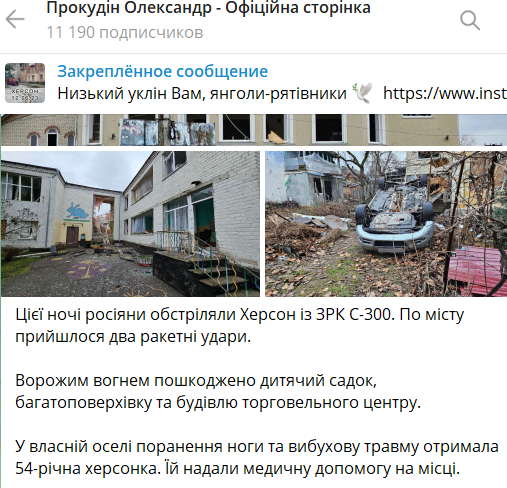Последствия обстрела Херсона. Фото: Telegram/olexandrprokudin