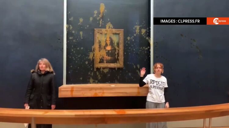 Экоактивисты супом облили в Париже картину Леонардо да Винчи. Скриншот