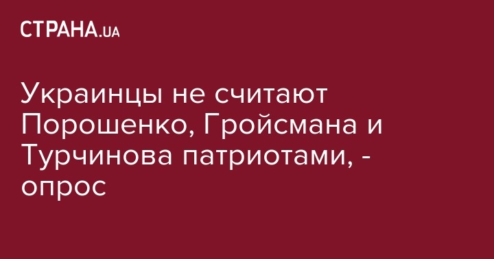Что касается высшего руководства Украины, то президента Петра Порошенко считают патриотом 23,3% респондентов (противоположное мнение у 51,3%), председателя Верховной Рады Андрея Парубия - 21,8% (ответ "нет" прозвучал у 53%), премьер-министра Владимира Гройсмана – 19,3% ("нет" – 53,5%), секретаря Совета национальной безопасности и обороны Александра Турчинова – 17,1% ("нет" – 55,4%).