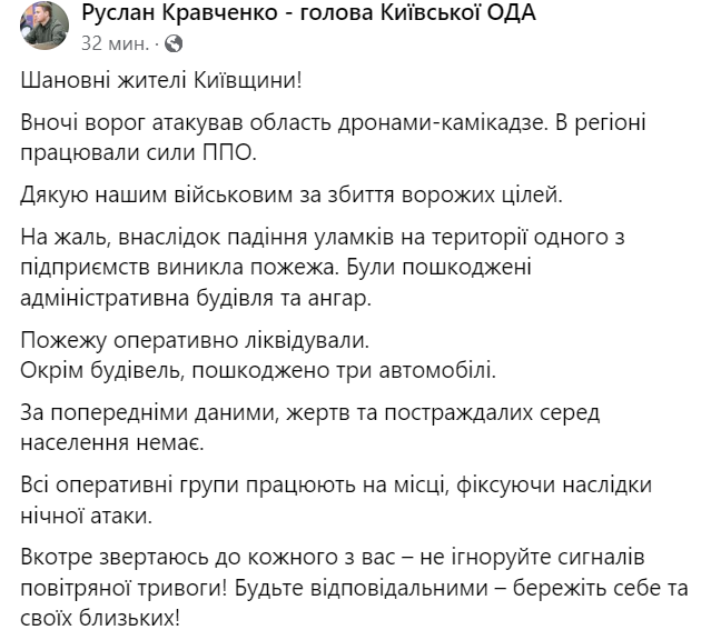 Об этом сообщает глава Киевской ОГА Руслан Кравченко.