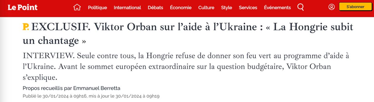Ранее Financial Times сообщала, что ЕС готовит удар по экономике Венгрии, если Орбан не проголосует за 50 миллиардов Украине 1 февраля. Цель этих мер - "нацелиться на экономические слабости Венгрии, поставить под угрозу ее валюту и вызвать крах доверия инвесторов". А также "нанести ущерб рабочим местам и экономическому росту".