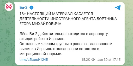 Напомним, "Би-2" выступают против вторжения в Украину и уехали из России.