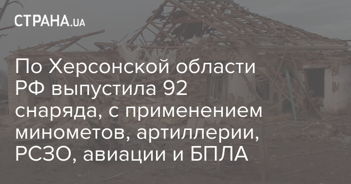 По Херсонской области РФ выпустила 92 снаряда, с применением минометов, артиллерии, РСЗО, авиации и БПЛА
