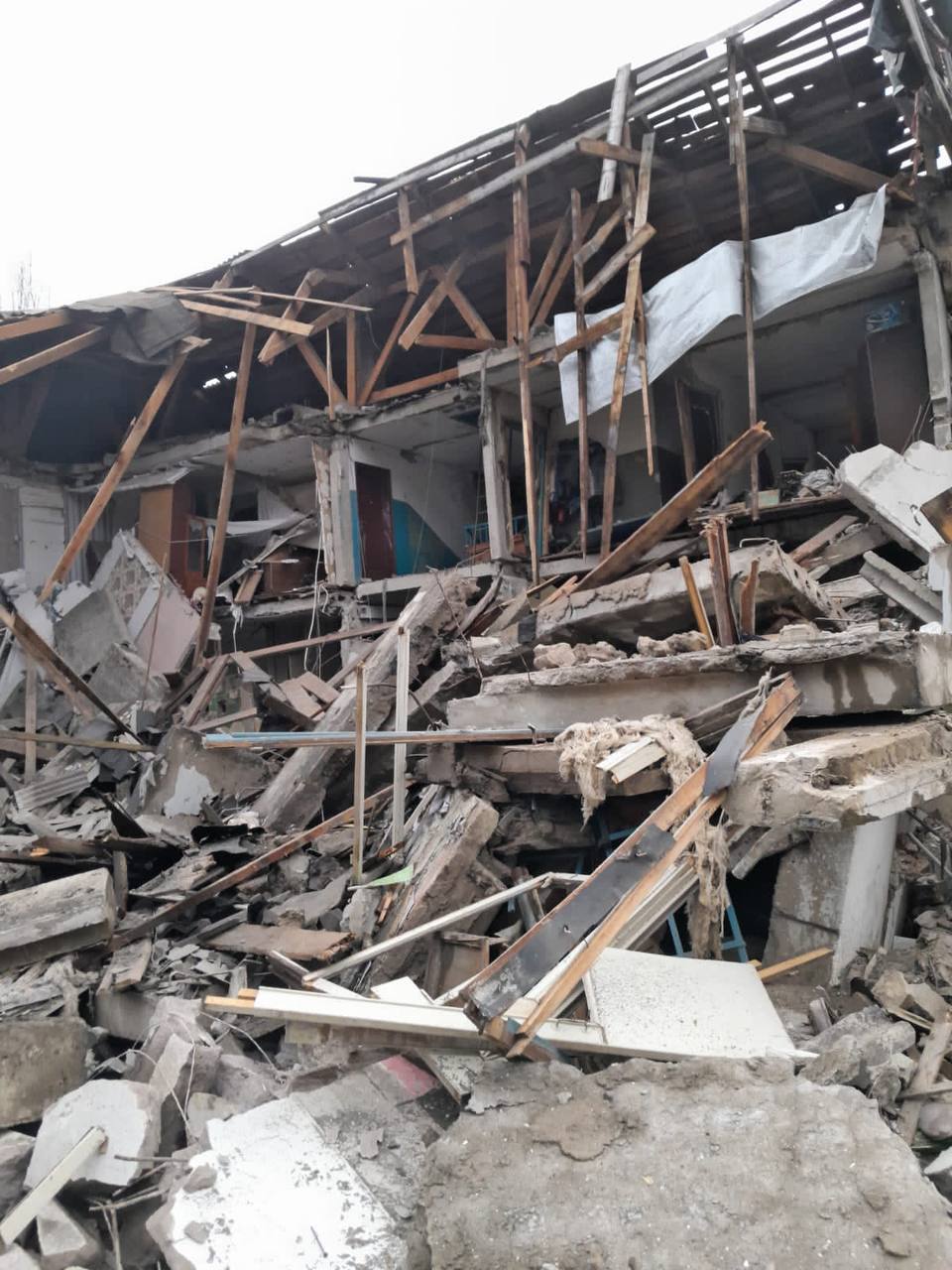 В Колодезном под Купянском был разрушен двухэтажный многоквартирный дом. В Горяном того же района под удар попали админздание, склад, мастерская и электросети.