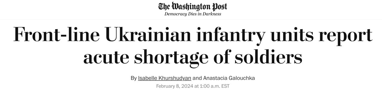 Американская газета The Washington Post сегодня опубликовала очень мрачную статью о ситуации на фронте, где украинские войска сталкиваются с огромной нехваткой не только снарядов, но и солдат.