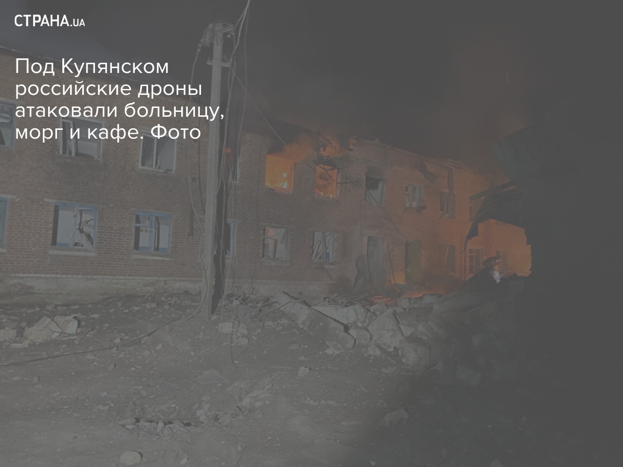 Российские дроны ночью разбомбили больницу, морг и кафе в селе Великий Бурлук под Купянском.