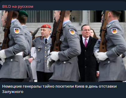 Отметим, что вчера немецкие генералы провели встречу с новым главкомом Александром Сырским и министром обороны Рустемом Умеровым. Об этом официально сообщало Минобороны.