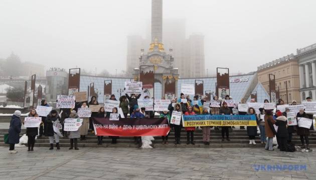 В Киеве семьи военных вышли на митинг с требованием демобилизовать их родных