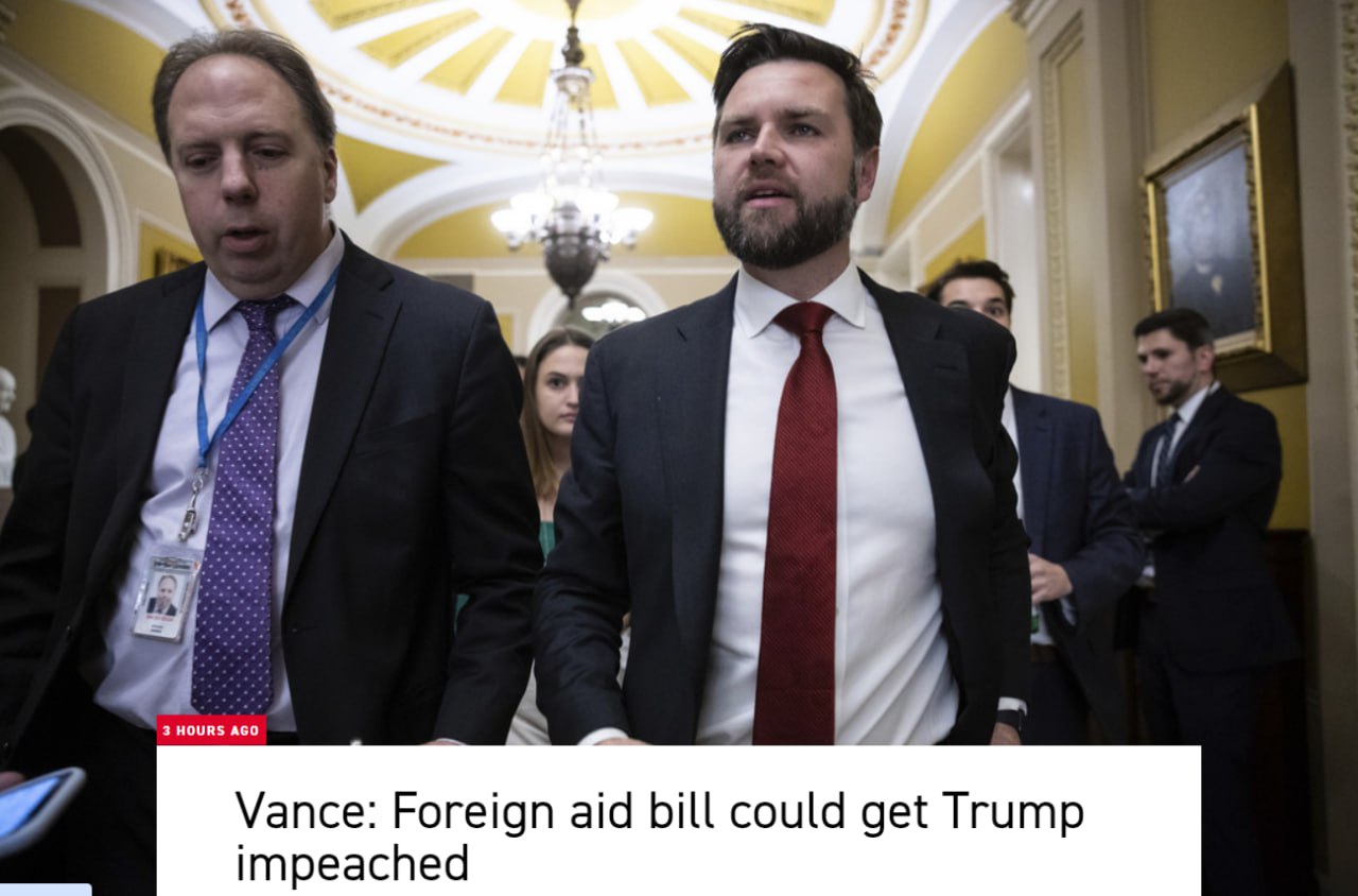 Он рассказал, что законопроект о помощи Украине, Израилю и Тайваню может связать руки Трампу в случае, если тот снова станет президентом США и захочет приостановить выделение средств на поддержку Киеву. Это связано с тем, что действие части средств, предусмотренных законопроектом, истекает через девять месяцев после начала следующего президентского срока - 20 января 2025 года. По мнению Вэнса,  это фактически сковывает Трампа в принятии собственных решений о расходах на Украину.