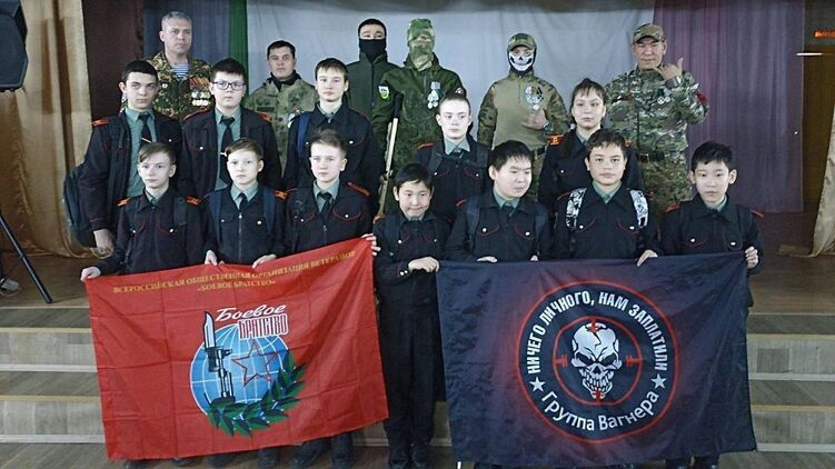 Бывшие "вагнеровцы" провели школьникам Бурятии урок мужества с флагом "Ничего личного, нам заплатили"