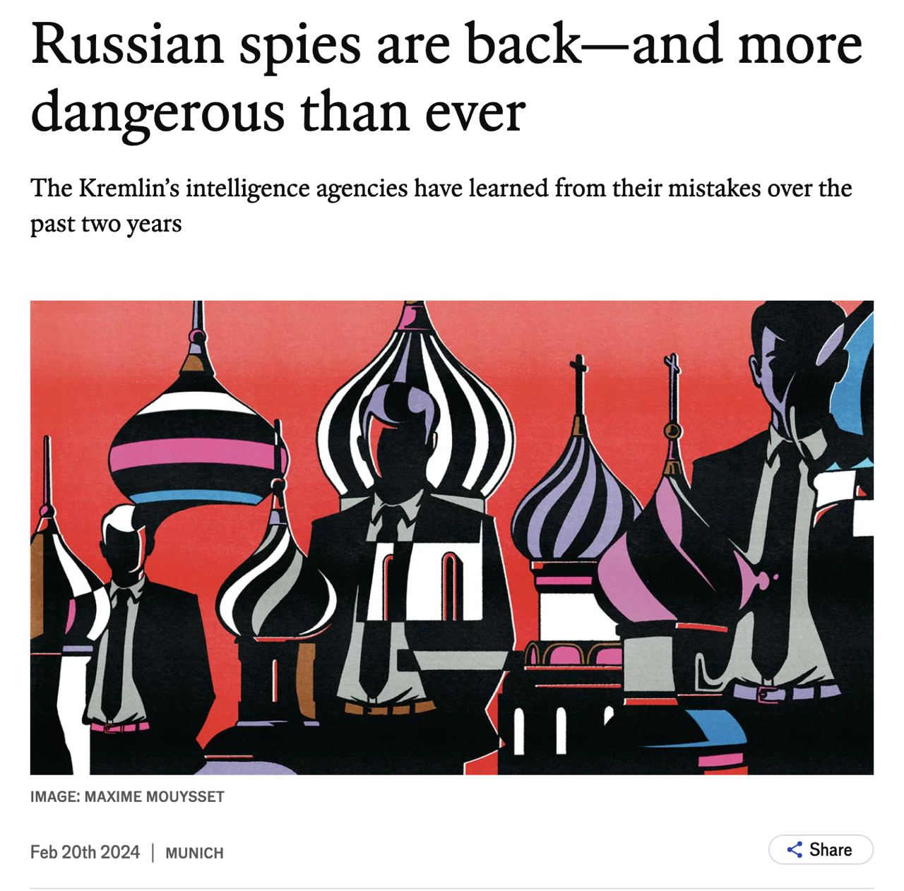 Российские шпионы вернулись в Европу и стали "еще опаснее, чем когда-либо". По данным Королевского объединённого института оборонных исследований (RUSI), российские спецслужбы извлекли уроки последних двух лет, когда их массово разоблачали в ЕС, а многие спецоперации были провалены, и "вступают в новую фазу политической войны против Запада".