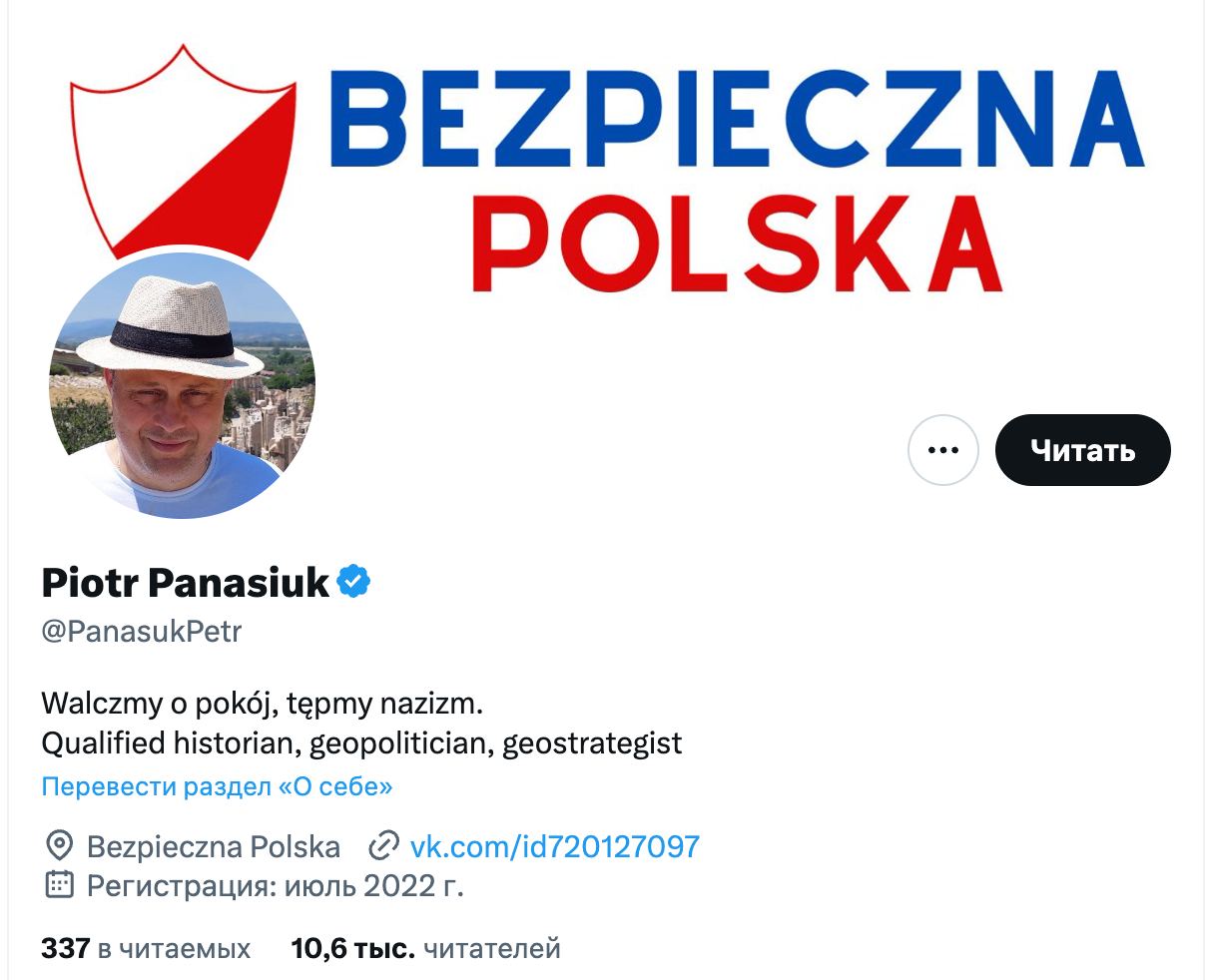 Также указано, что он "агент или сотрудник спецслужб россии". А также обозреватель издания Myśl Polska.