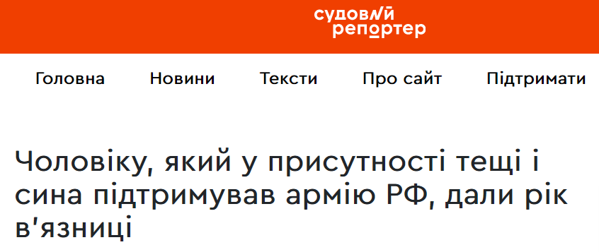 В Киеве теща сообщила полиции, что ее зять поддерживает армию РФ, и суд отправил его на один год в тюрьму.