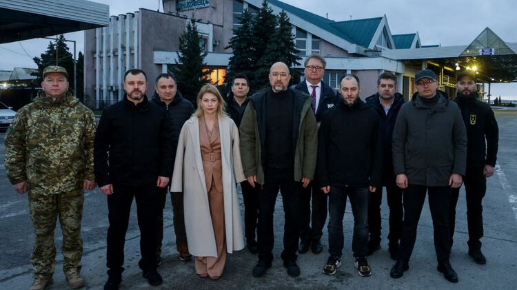Премьер сообщил, что вместе с ним на границу прибыли вице-премьеры Ольга Стефанишина и Александр Кубраков, министр внутренних дел Игорь Клименко, министр АПК Николай Сольский, замминистра иностранных дел Евгений Перебийнис, замминистра экономики Тарас Качка, замминистра инфраструктуры Сергей Деркач, глава Госпогранслужбы, генерал Сергей Дейнеко, руководитель таможни Сергей Звягинцев.